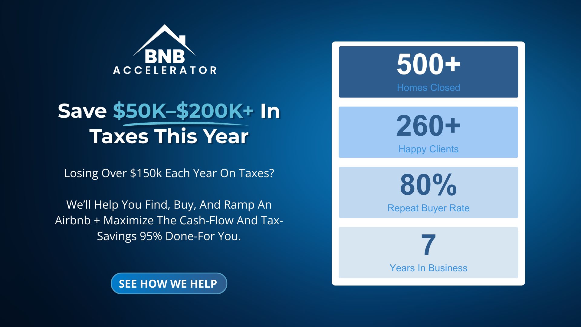 You're paying six figures to the IRS yearly. Cash-flowing Airbnb properties stop that: real depreciation, monthly income, and immediate tax savings. We review 1,000+ deals weekly and save the best for clients.
